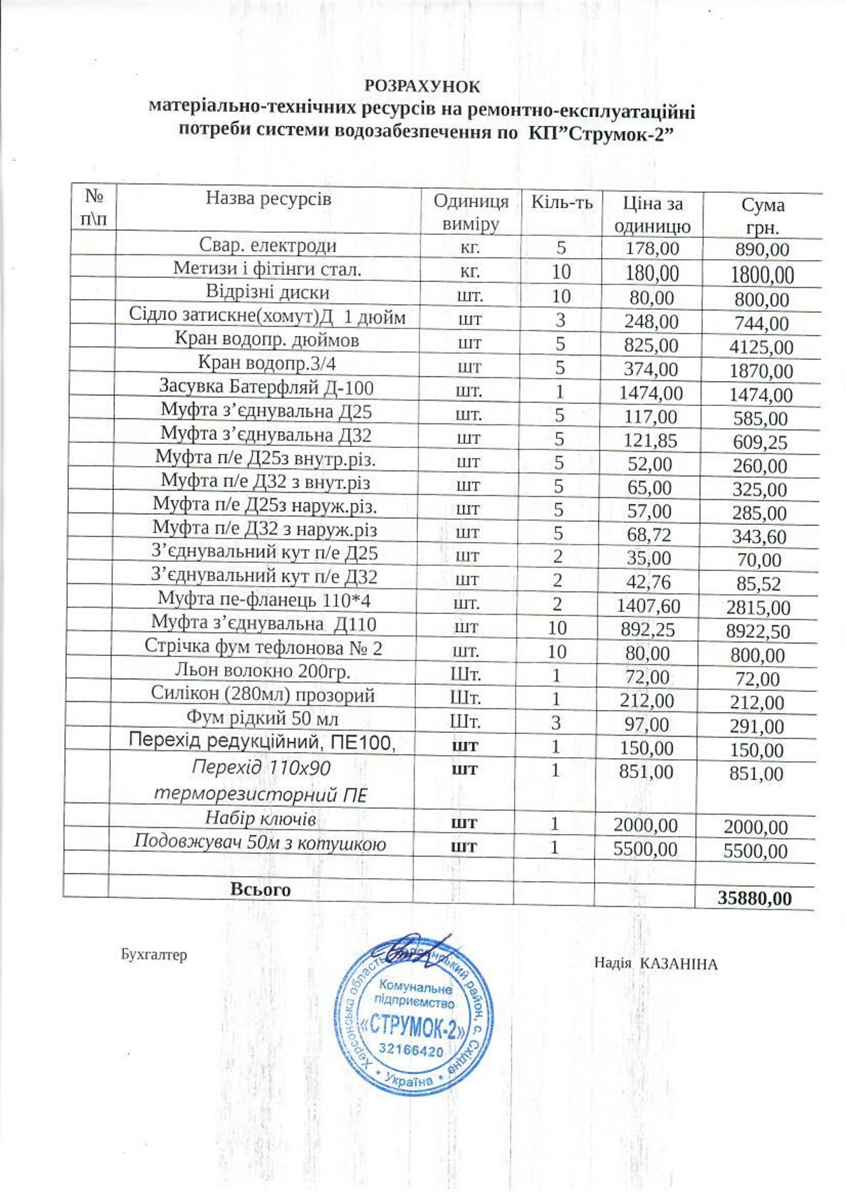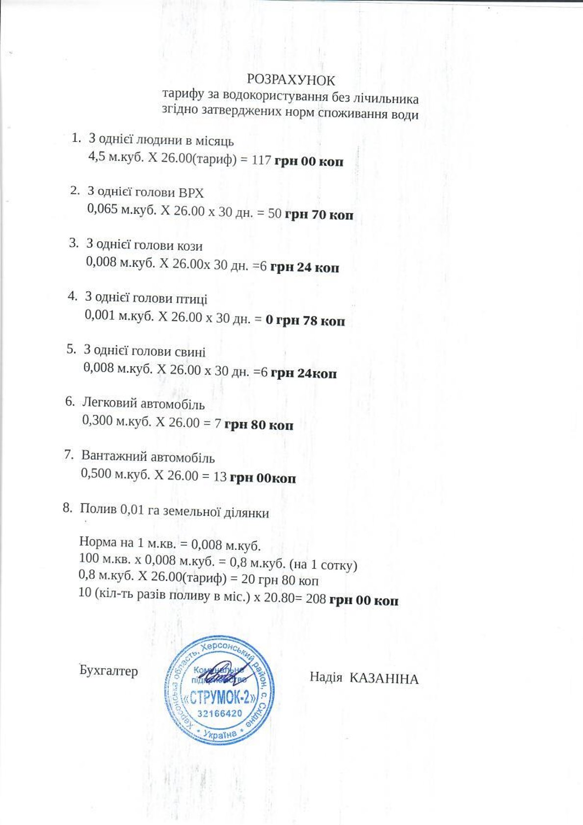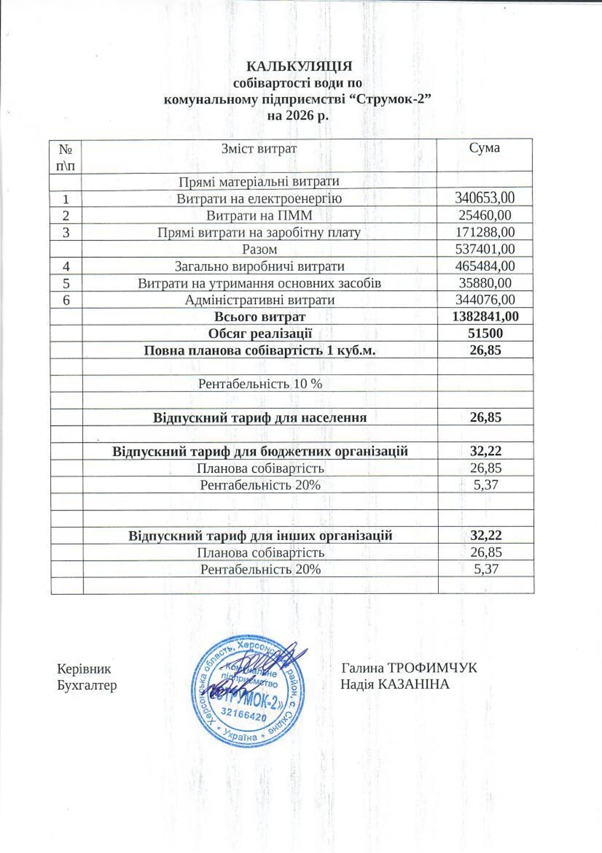 У звязку із збільшенням податків та зборів на загальнодержавному рівні підвищенням цін і тарифів на паливно-енергетичні ресурси, підвищенням тарифу на електроенергію, підвищенням мінімальної заробітної плати, комунальне підприємство "Струмок 2" відповідно до вимог пункту 7.15 "Порядку формування тирифів на централізоване водопостачання та водовідведення" затвердженого постановою Кабінету Міністрів України від 01 червня 2011 року №869 "Про забезпечення єдиного підходу до формування тарифів на житлово-комунальні послуги", перерахували тариф на водопостачання шляхом коригування витрат собівартості
