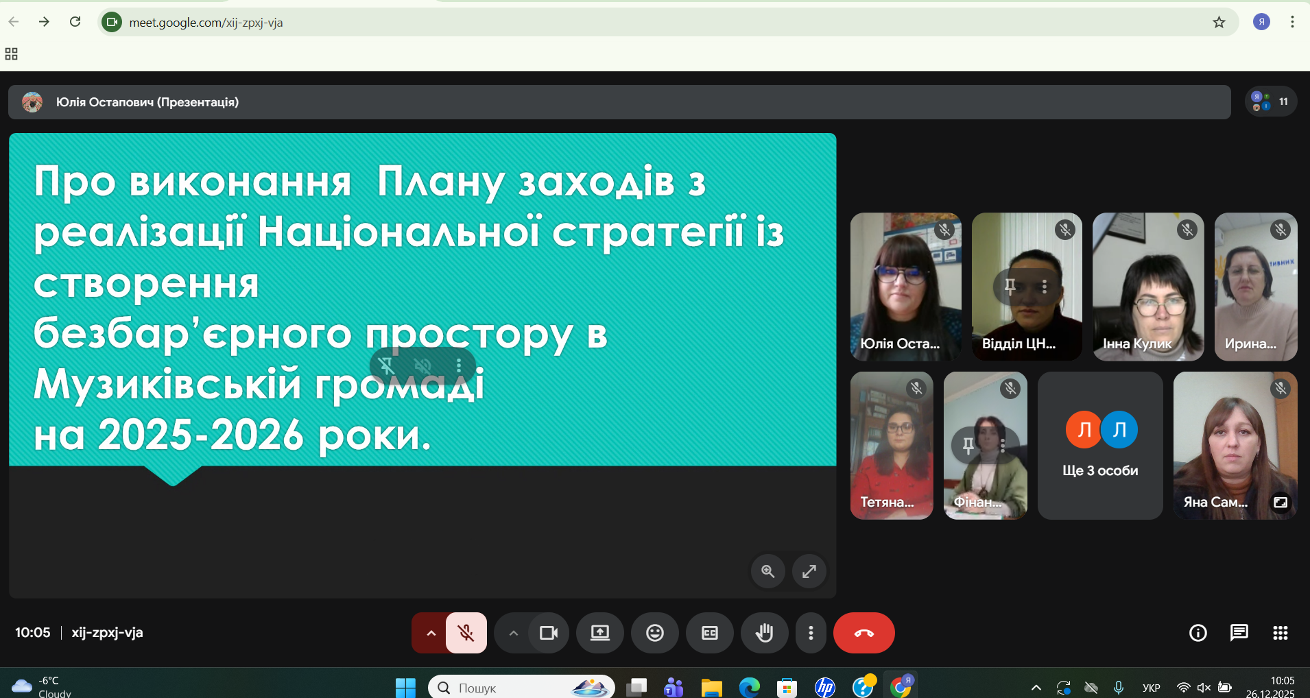 - Про виконання Плану заходів з реалізації Національної стратегії із створення безбар’єрного простору в Музиківській громаді на 2025-2026 роки.